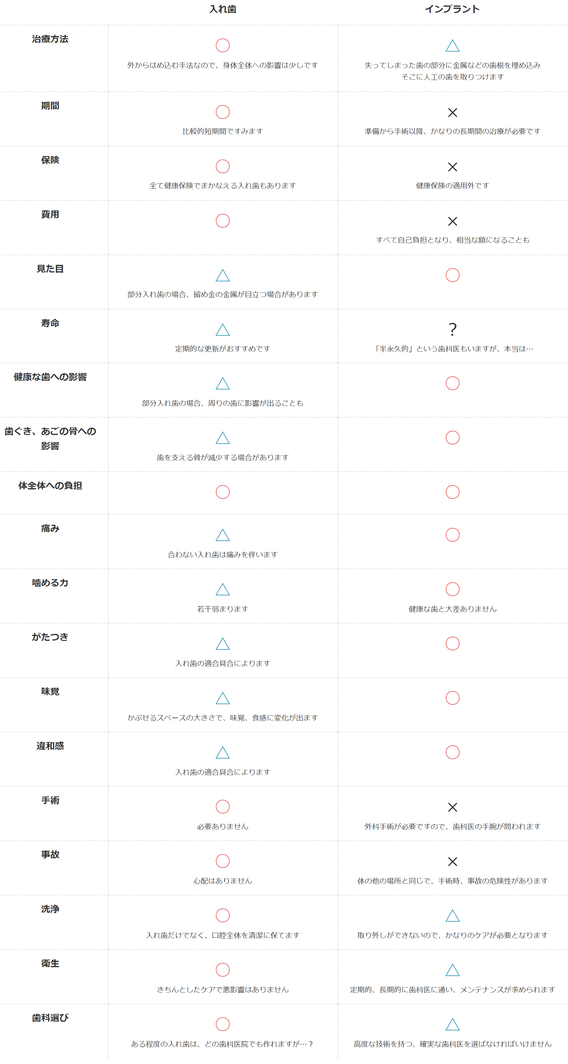 歯が抜けたときの治療の選択肢としてよく名前が上がるインプラントと入れ歯