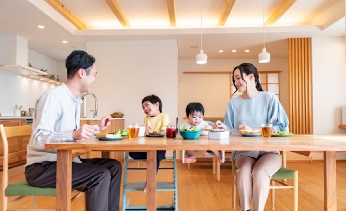 背筋を伸ばし、足をしっかり床につけて食事をすることで、正しい顎の動きができます。